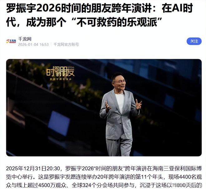 近日,得到APP创始人罗振宇在2026年“时间的朋友”跨年演讲里发表了一番言论。
