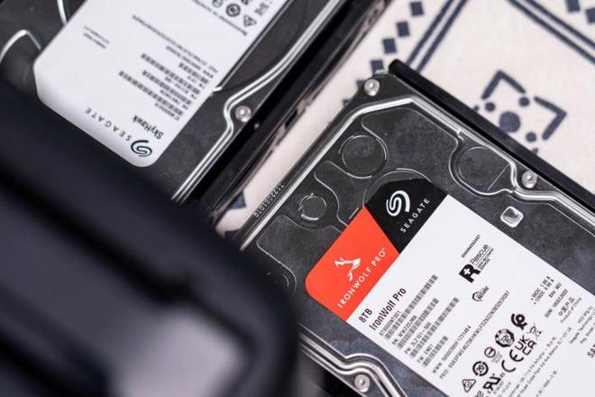 本次测试,我们使用了来自希捷的两块容量分别为4 TB和8 TB的7200转机械硬盘。其中8TB版本为希捷酷狼系列,采用CMR传统磁记录技术,同级别中首款采用RV旋转振动传感器,可在多硬盘NAS中保持高性能。另外AgileArray固件支持双平面平衡和限时故障恢复功能,可在多盘位系统中提供出色的RAID性能。