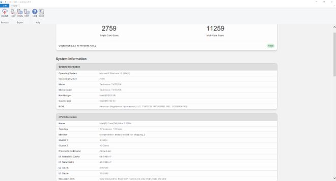 整机性能方面,我们在一块M.2 SSD上安装了Windows 11操作系统,然后直接启动,通过常见的Geekbench程序简单进行了测试,实测单核分数2759分,多核分数11259分,这完全是一台主流轻薄笔记本的性能水平,可以说Z425完全是在挑战NAS的性能巅峰了!