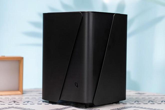 首先是外观设计,极空间Z425沿用Z423的经典设计,立式架构,两个对角位布置的异形铝合金金属盖板,不仅更美观,提升了整机的质感,也能帮助机身散热。