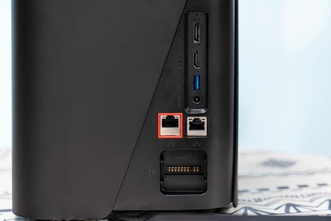 背部接口部分,包括eSATA、HDMI 2.1、USB 3.2 GEN2和两个网口,其中一个是万兆规格,另一个是千兆,网速狂飙,4K串流丝毫不必担心。