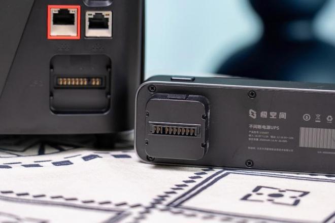 此外,下方依然保留了专用的UPS接口,随机附赠的U3500T UPS模块就可以安装上了,确保突然停电时机器有充足的时间关机。相比Z423标配的U2600T电源,U3500T容量更大,达到了50.4Wh(3500mAh),足以提供保存紧急数据、关机的操作时间。小书包的造型插上也不占用额外空间,大大增加了数据保护的安全感。