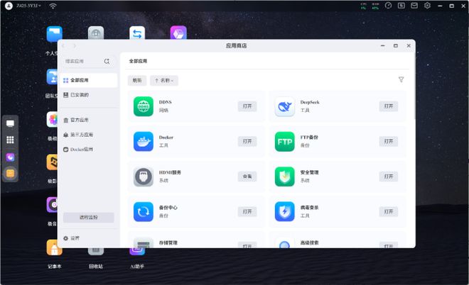 Docker是高阶玩家们最喜欢的容器应用,ZOS应用商店特别加入Docker应用专区,方便普通用户使用Docker。内置了丰富的镜像资源库,对于Docker的功能支持相比早前版本也更加完善。虽然目前应用商店里的第三方应用和Docker应用数量还不是很多,但相信未来肯定会逐渐丰富。