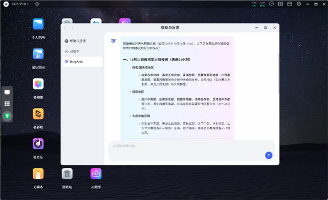 当然,一些诸如天气等需要接入互联网检索的时效性内容,你也可以使用AI助手来进行检索,使用基于云端的服务。